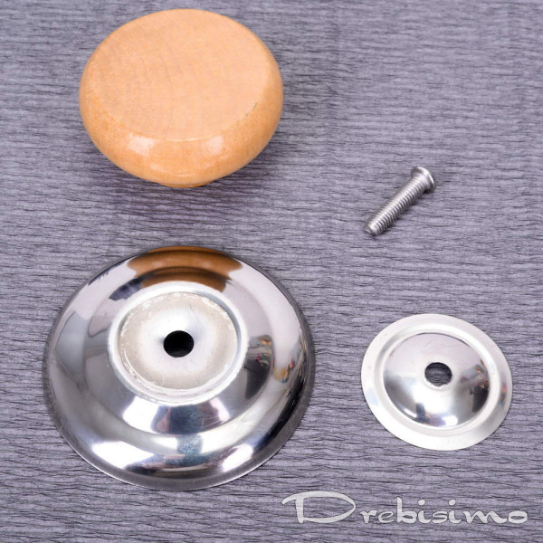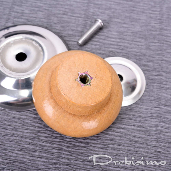 Универсална дръжка с болт за стъклени капаци. Метална втулка с резба пресована в дървото за по-здраво захващане. Голяма метална шайба от долната страна на капака.