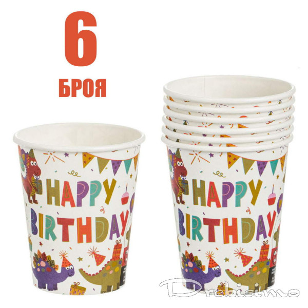 Цветните и забавни чашки с декор Динозаври, ще направят незбравим и щастлив детския рожден ден или празник, а усмивките са гарантирани.