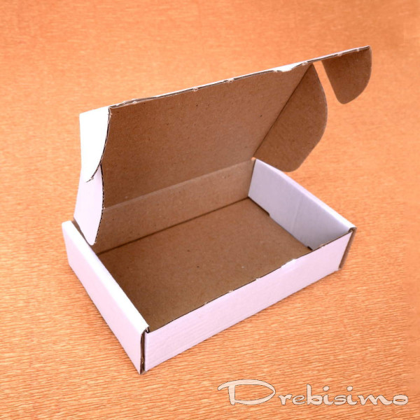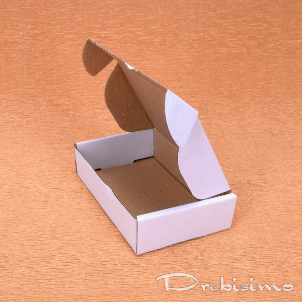 Описание на 12 х 8 х 3 см. бяла сгъваема картонена кутия: