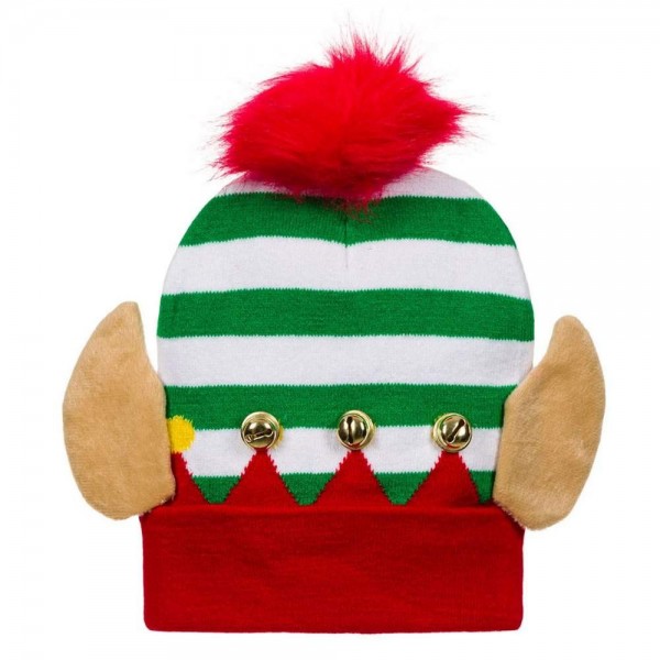 Описание на Забавна коледна шапка Елфче със звънчета и помпон: