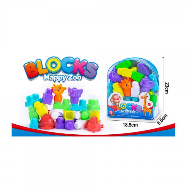 Весел конструктор с 2 животинки в прозрачна раничка, която се закопчава с цип. Блокчетата са направени от нетоксична здрава пластмаса, което ги прави безвредни за децата, а достатъчно големите им размери са подходящи дори за начинаещите строители. Забавлявайте се, докато редите кубчетата, като неусетно ще се запознавате с цветовете, ще развивате логическото си мислене, координацията, фините движения на ръцете и какво ли още не!