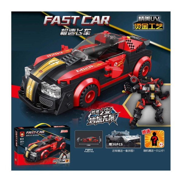 Забавен конструктор 2 в 1, който всеки малък мъж ще оцени подобаващо! Имате на разположение 287 строителни блокчета, с които да сглобите страхотната спортна кола с отварящи се врати, а после и внушителния трансформър. Или пък обратното – първо трансформъра, а после колата. Ако се затрудните – използвайте подробните инструкции за поетапно сглобяване, включени в комплекта. Но това не е всичко! В кутията ще намерите и пъзел, който се състои от 36 големи части с номерца, изписани на гърба. Двойно удоволствие, подходящо за самостоятелно забавление или весели игри с приятели!