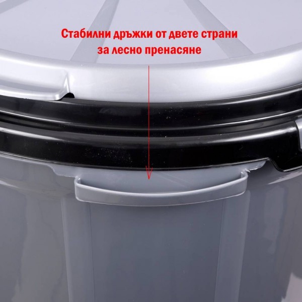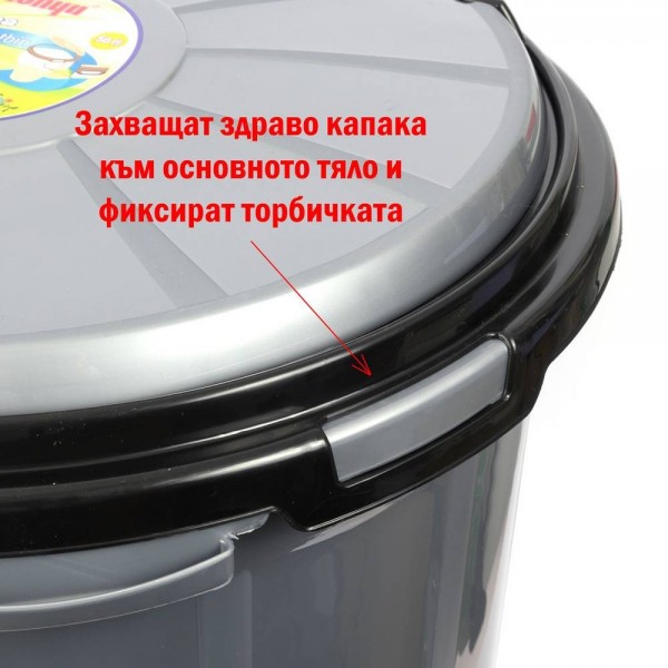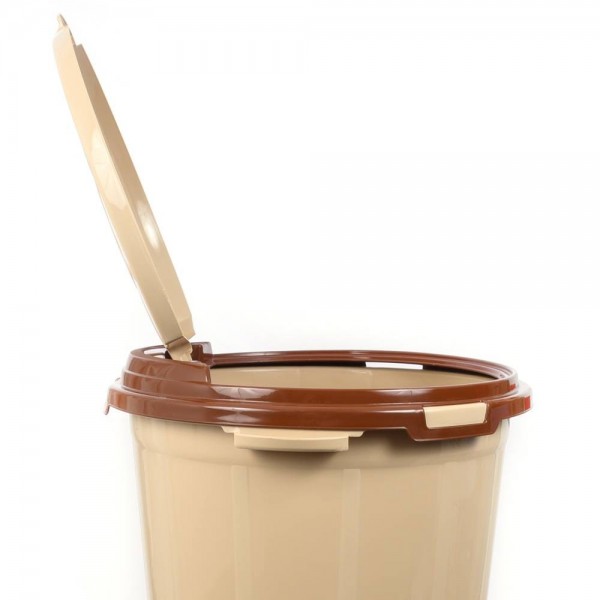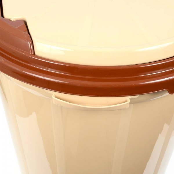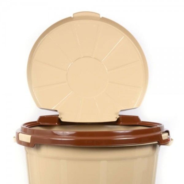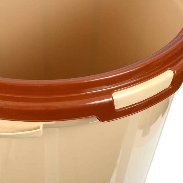 Много добър бюджетен вариант за голям кош за боклук с капак на панти, който може да се фиксира в отворено положение. Коша е изработен от висококачествена пластмаса и се предлага в два цветови варианта: бежаво/кафяво и сив металик. Капака на коша има щипки, които захващат здраво торбичката към основното тяло, така че тя да не се свлича надолу. Кошът има удобни дръжки от двете страни за по-лесно пренасяне.