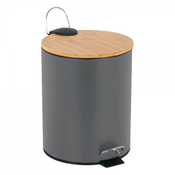 5 л. метален сив кош за боклук с капак от бамбук и вътрешна кофа