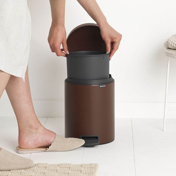 Описание на 5 л цвят минерално уютно кафяво кош за смет с педал Brabantia от серия NewIcon: