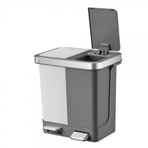 2 х 10 л бял-сив кош за разделно събиране на отпадъци с 2 педала EKO от серия HANA DUO