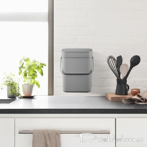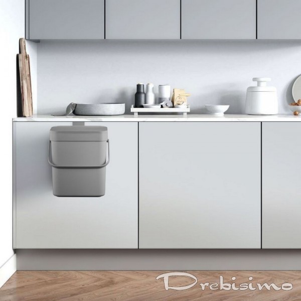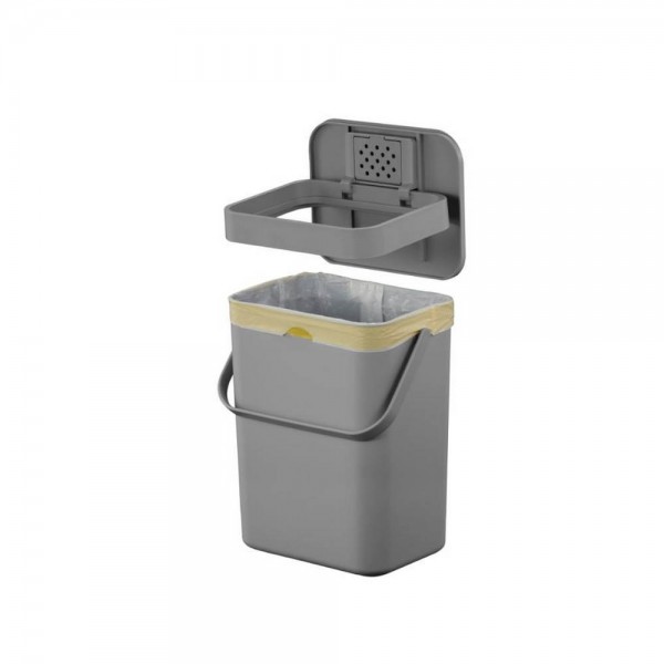 Компактен пластмасов кош за хранителни отпадъци. Снабден с удобна дръжка за лесно преместване. Двата начина на отваряне на капака повишават ефективността при използване. Лесен за окачване на вратата на кухненския шкаф, може също да се закачи на стена или да се постави на плота. Кошът има подвижна рамка, за да държи торбата с отпадъци на място и е лесен за почистване.