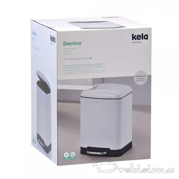 - KELA Кош за отпадъци с педал “Davino“ - бял - 6 л