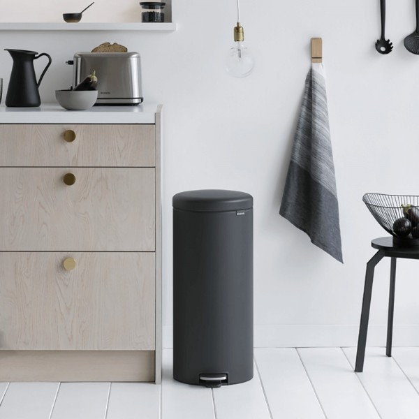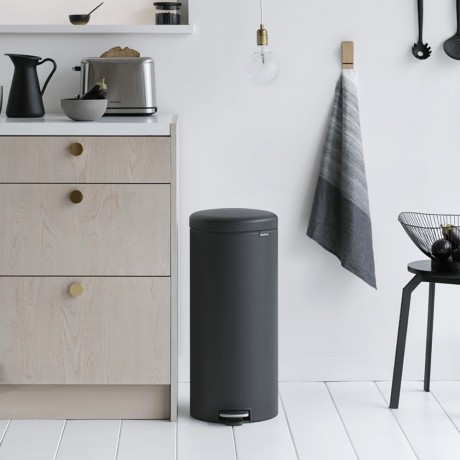 Този 30 литров кош за отпадъци с педал е достатъчно голям, за да събере Вашия боклук и същевременно е толкова компактен, че да се побере под плота Ви. Кошчетата от серия Newicon са не просто красиви, те са също и надеждни. Чрез закупуването на кошче от тази серия, Вие подпомагате кампанията за почистване на океаните от пластмасови отпадъци - за всеки продаден брой, Brabantia прави дарение. Ето това е отговорно пазаруване! Самата кофа за смет е с много лек, но изключително здрав и надежден педален механизъм и има уникална система за меко, плавно и тихо затваряне. Педалът на коша е изработен от метал и му придава уникалност. При затварянето на коша, миризмите остават вътре, вместо да ги усещате из цялото помещение. Кофата е с основа, която е противоплъзгаща и го държи стабилно. Въпреки размера си, този кош може да бъде пренесен навсякъде - просто хванете дръжката на капака и готово!