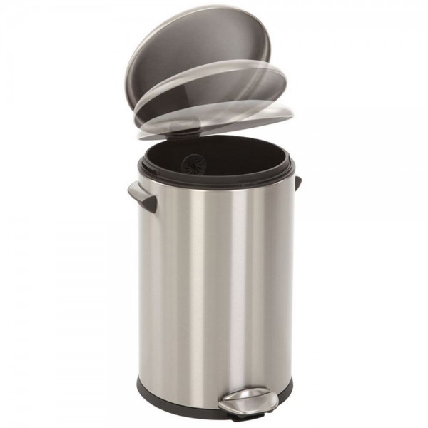 Кош в цвят матиран инокс, който има вътрешна кофа, педал и се затваря безшумно