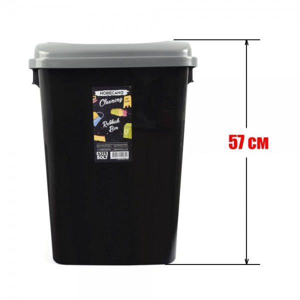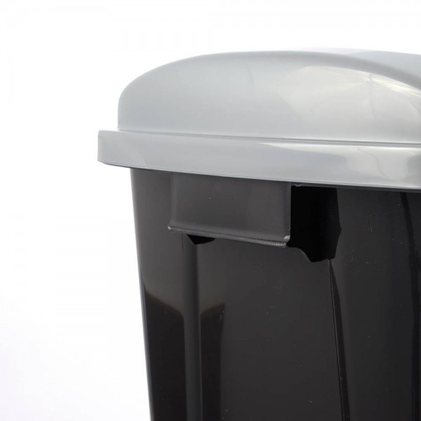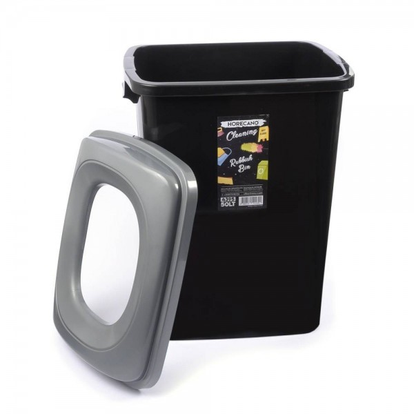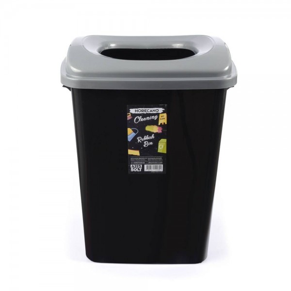 50 литровия кош за боклук е с височина 57 см и не е необходимо човек да се навежда за да изхвърли боклук, със стилен дизайн, в черен цвят и горен ринг в сив цвят. Горният ринг освен чисто визуална завършваща функция има и практическа роля да задържа и прикрива краищата на найлоновата торба, която се поставя в коша. Изработен от качествена пластмаса с цел да служи дълги години.