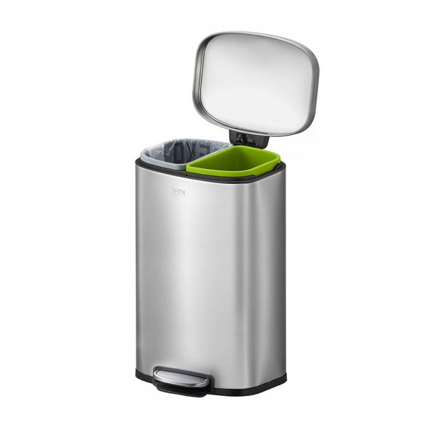 EKO Отворен кош за разделно събиране на отпадъци с педал “OLI - CUBE“. Това е отворен кош за разделно събиране на отпадъци, изработен от неръждаема стомана. Снабден е с две пластмасови вътрешни кофи с вместимост по 20 литра. Стилен и удобен за употреба в шкаф или под бюро.