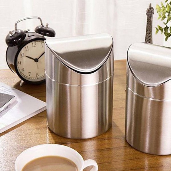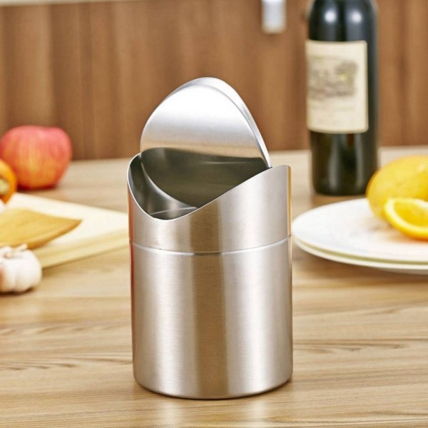 Малко, но стилно и изискано кошче за маса или кухненски плот. Изработено изцяло от полирана неръждаема стомана от висок клас. Кошчето е много удобно за използване на кухнята - за отпадъци като използвани кафе капсули, пакетчета с чай и други малки отпадъци. Също така може да се използваза изхвърляне на различни консумативи по време на гримиране, маникюр и т.н.