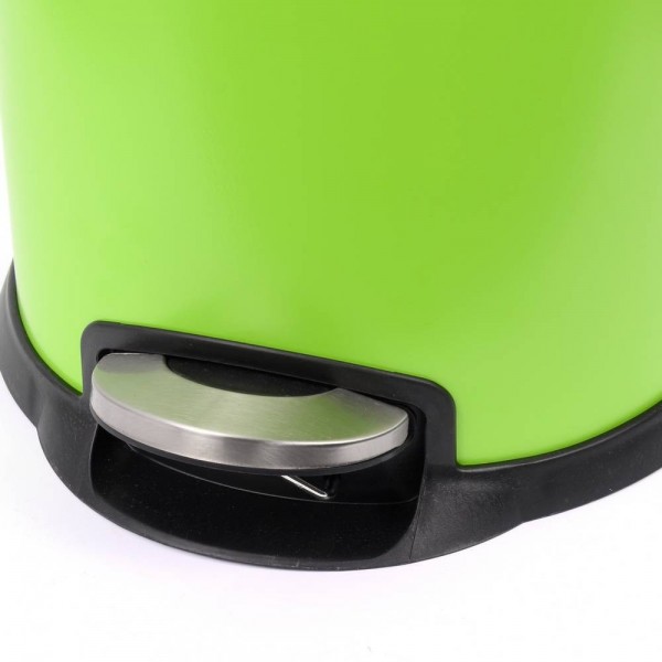 Стилен зелен кош с педал и капак с функция за плавно спускане. Система на амортисьори гарантира безшумна работа на капака. Външният корпус на коша е метален и прахово боядисан в зелен цвят. Отвътре има вътрешна пластмасова кофа с дръжка. Самият кош също има сгъваема външна дръжка разположена в задната част на пантата на капака.