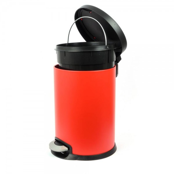 Стилен червен кош с педал и капак с функция за плавно спускане. Система на амортисьори гарантира безшумна работа на капака. Външният корпус на коша е метален и прахово боядисан в червен цвят. Отвътре има вътрешна пластмасова кофа с дръжка. Самият кош също има сгъваема външна дръжка разположена в задната част на пантата на капака.