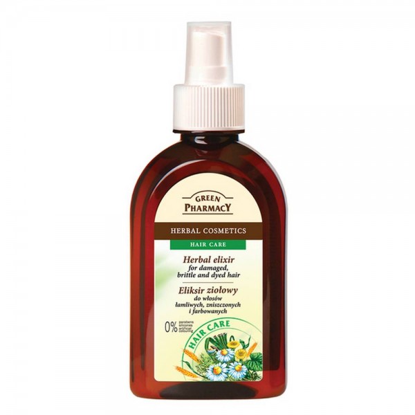 Състав: Екстракт от лайка, корен на сладка тръстика, подбел и пшенични кълнове. Билковите еликсири съдържат натурални растителни формули, основани на рецепти от старите книги за билките. Впръсква се върху измита и влажна коса, втрива се в кожата на главата, не се изплаква. Не оставя косата лепкава и тежка. Еликсирите не съдържат парабени, изкуствени оцветители, SLS (Sodium lauryl sulfate) и SLES (Sodium laureth ether sulfate).