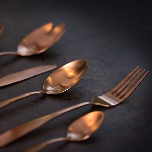 Красиви лъжички за кафе, които придават завършек на подредбата на масата. Цветът розово злато е вълнуващ и различен избор, който е подходящ за да изненадате любимия човек например. Изработени от неръждаема стомана, която е с PVD покритие. Почистват се само на ръка.