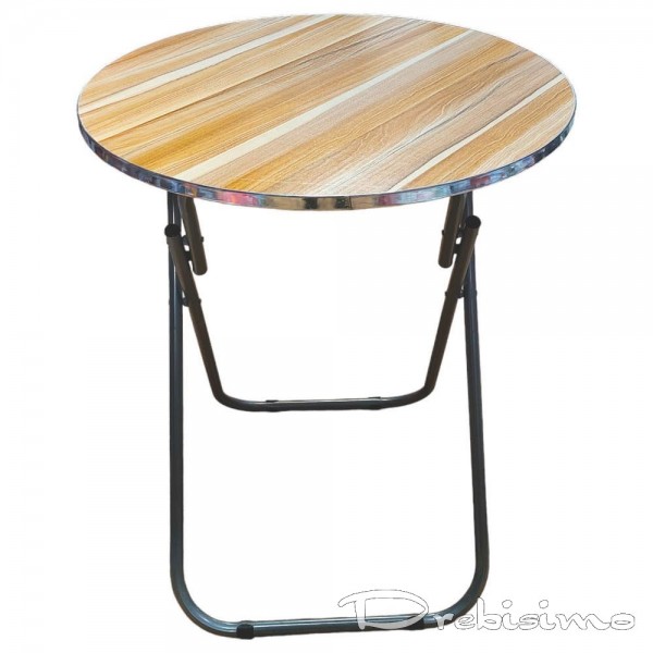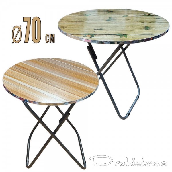 Кръгла сгъваема маса от МДФ с височина 70 см. и диаметър 70 см. Сгъваемата маса е незаменима когато пътешествате, на пикник или просто отдих сред природата. Също така тя ще ви помогне да спестите място на вилата, на балкона или терасата - само за няколко секунди я изваждате и разгъвате. Кръглата сгъваема маса заема минимум място, може да я съхранявате в килера, до някой шкаф или просто облегната на стената. Масата има здрава конструкция и лесно се почиства. Може да я използвате както в помещение, така и навън.