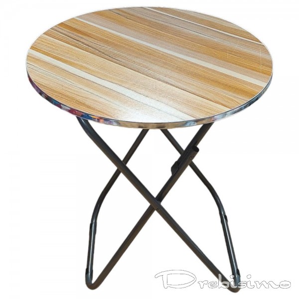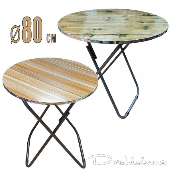 Кръгла сгъваема маса от МДФ с височина 70 см. и диаметър 80 см. Сгъваемата маса е незаменима когато пътешествате, на пикник или просто отдих сред природата. Също така тя ще ви помогне да спестите място на вилата, на балкона или терасата - само за няколко секунди я изваждате и разгъвате. Кръглата сгъваема маса заема минимум място, може да я съхранявате в килера, до някой шкаф или просто облегната на стената. Масата има здрава конструкция и лесно се почиства. Може да я използвате както в помещение, така и навън.