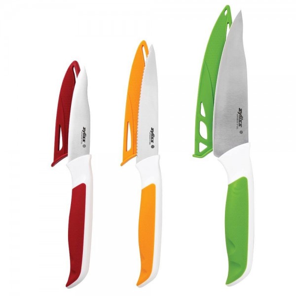 Описание на Комплект от 3 бр ножове с дъска за рязане ZYLISS серия COMFORT:
