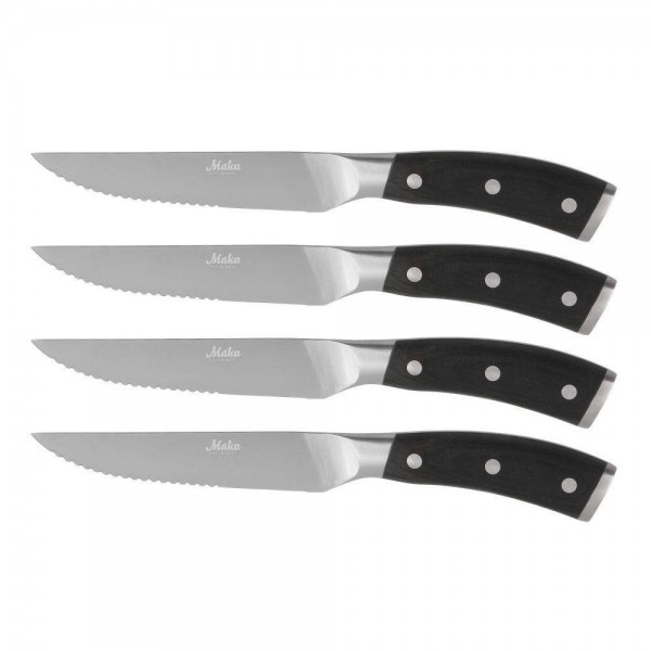 - MAKU Комплект ножове за стек и пица с дръжка от Pakka дърво - 4 бр