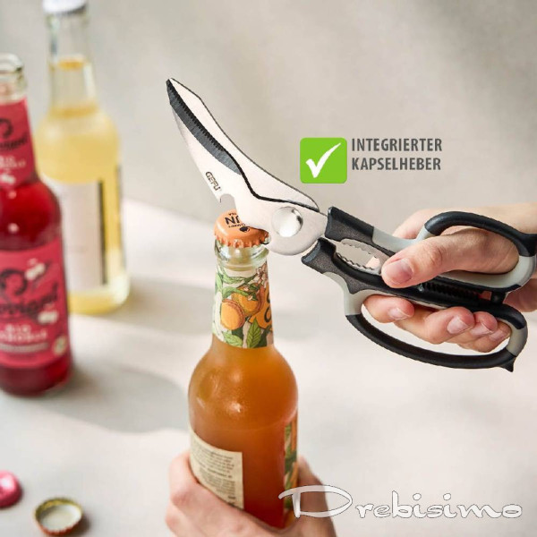 Универсална ножица с много приложения в кухнята и домакинството - рязане на кости на птици, отваряне на бутилки и чупене на ядки. Тези многофункционални ножици се справят с всяко предизвикателство с лекота и са надежден спътник за широк спектър от задачи.