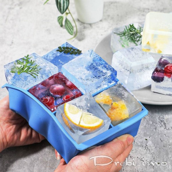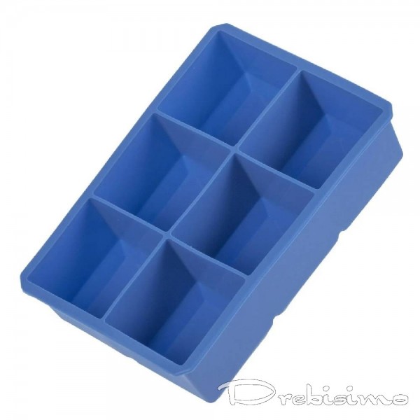 Много гъвкава, силиконова форма за "производство" на 6 огромни кубчета лед. Много лесна за освобождаване на ледчетата, благодарение на силно еластичният материал. Силиконовата форма е с 6 гнезда, всяко с диаметър 5х5 см. Идеална е както и за охлаждане на напитки, така и за подготвяне на заготовки за коктейли. Не задържа аромати, изключително устойчива, дори при многократна употреба. Формата е подходяща за използване както у дома, така и професионално - във фреш барове, кафенета, парти клубове. Може да сложите към водата във формата резени свежи плодове, листенца мента или друг аромат, с които след замразяване да направите свежа и охладена напитка, във винтидж буркан с канелка за приятна изненада на вашите гости.