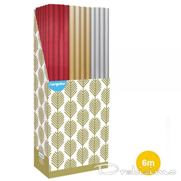 Едноцветна опаковъчна хартия на ролка, с която вашите подаръци ще станат още по-завършени. Изберете дизайн в подходящия размер, аранжирайте с панделка или дори с обикновен канап и ще имате прекрасно декориран подарък за всякакъв повод и за всеки вкус. Цената е за 1 бр. ролка.