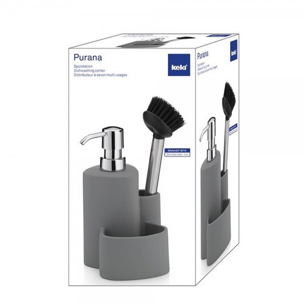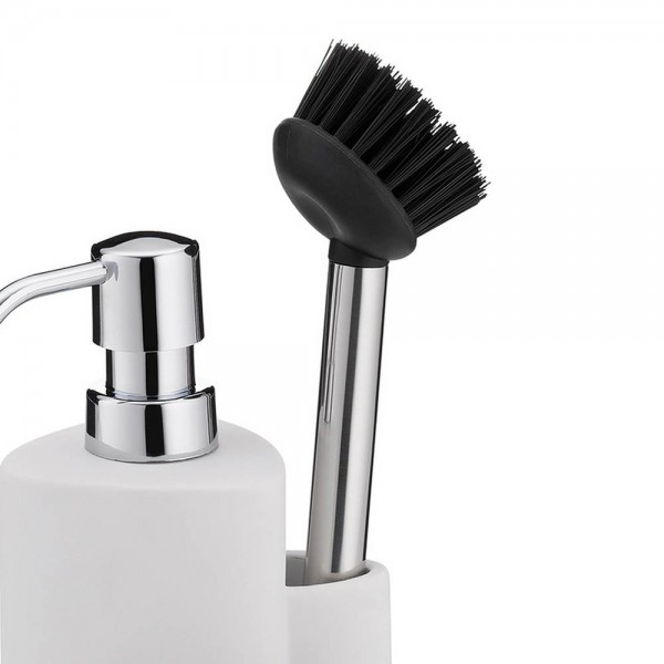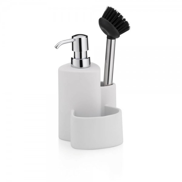 Практичен комплект за миене на съдове, състоящ се от дозатор за сапун или препарат за съдове, отделение за четка за миене на съдове с включена четка, и друго отделение за гъба или тел за съдове. Това позволява най-важните принадлежности, които са необходими на мивката и често стоят един до друг, да се поставят спретнато и централно. Корпусът на дозатора е изработен от керамика.