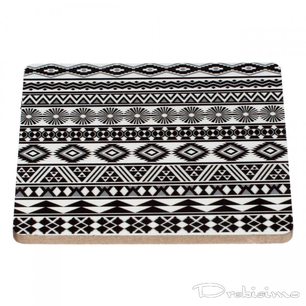 Стилизирана подложка за чаша, с летен черно - бял принт в ацтекски стил. Един красив и артистичен аксесоар, подходящ за деликатен подарък на приятели и любими хора. Подложката за чаши е с привличащ вниманието дизайн, добавящ настроение към сервирането на масата през лятото. Подходяща както за чашка кафе, така и за голяма чаша с домашна лимонада.