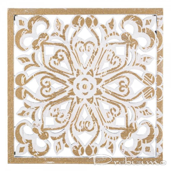 Стилизирана дървена лятна подложка за чаша, със състарен перфориран дизайн в бяло и златно. Един красив и артистичен аксесоар, подходящ за деликатен подарък на приятели и любими хора. Подложката за чаши е с привличащ вниманието дизайн, добавящ настроение към сервирането на масата през лятото. Подходяща както за чашка кафе, така и за голяма чаша с домашна лимонада.