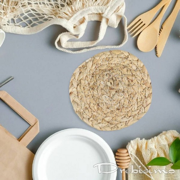 Ръчно изплетена от слама кръгла подложка за чаша. Един красив и артистичен аксесоар, подходящ за деликатен подарък на приятели и любими хора. Подложката за чаши е с привличащ вниманието дизайн, добавящ настроение към сервирането на масата през лятото. Подходяща както за чашка кафе, така и за голяма чаша с домашна лимонада. Ще стои красиво и като декоративна украса под ваза, свещ или друг орнамент от интериора. Естественият цвят на изсушените листа ще добави земна нотка към вашето пространство.