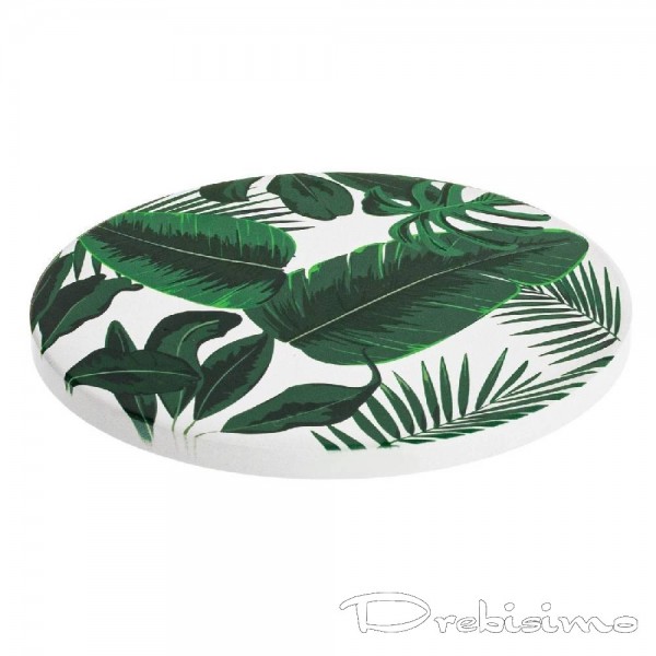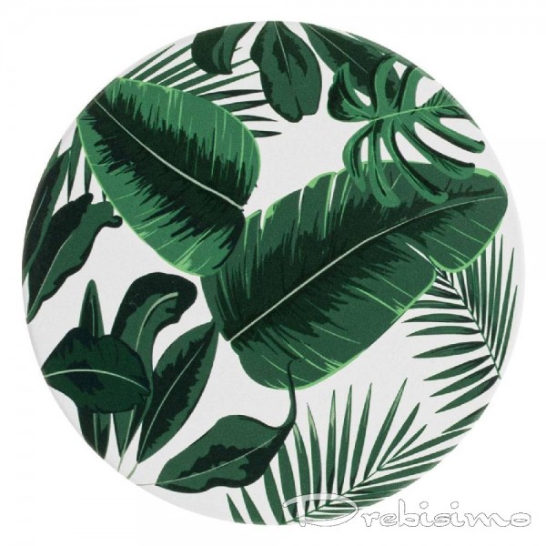 Описание на Кръгла лятна керамична подложка за чаши с дизайн зелени листа: