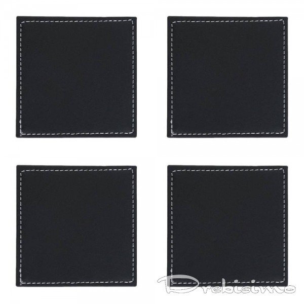 Комплект от 4 бр черни кожени подложки за чаши