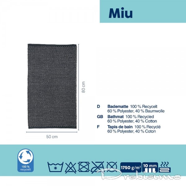 Описание на 50 х 80 см гранитно сива постелка за баня KELA от серия Miu: