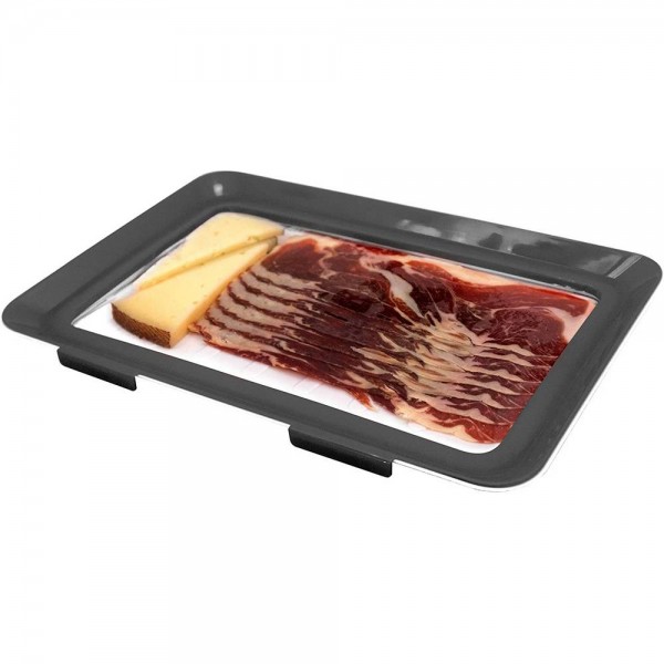 Специално разработен да поддържа храната свежа по-дълго време, този поднос е подходящ за съхранение и сервиране на месо, риба, плодове и зеленчуци. Предвиден е за многократна употреба - капакът е снабден със стреч фолио, което е много по-плътно и здраво от класическото фолио за еднократна употреба. Със своята устойчивост от -40 градуса С до +100 градуса С, подносът е подходящ за употреба в хладилник, фризер, микровълнова, както и за почистване в съдомиялна машина.