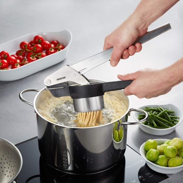 Пресата FORCE ONE® е създадена, за да направите своя домашна паста Spätzle, гладко картофено или кестеново пюре или пресен сок. С два перфорирани диска - един за паста и шпецле и един за пюре и сок. Пресата разполага с изваждаща се халка за окачване и заключващ се механизъм за спестяване на място при съхранение.
