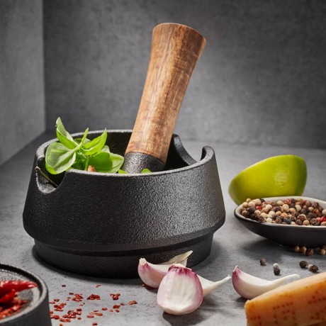 Перфектно хаванче с чугунено чукало и дървена дръжка от акациево дърво. Големият му размер (11,5 см. в диаметър) и грапавата му вътрешност улесняват значително смилането на различни билки, подправки и др. Ергономичната дръжка и голяма глава на чукалото правят използването на това хаванче лесно и удобно.