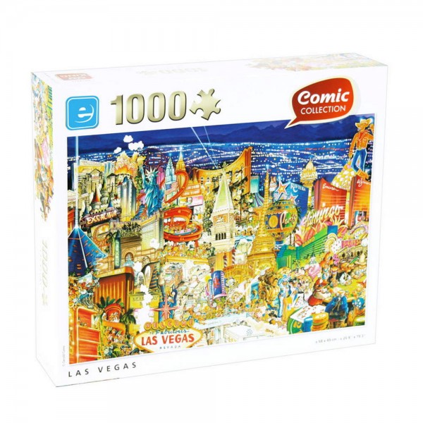 Колекция пъзели „Comic“ - Las Vegas, ще ви пренесе в свят на луксозни хотели, казина и забавления. Без да се налага да напускате уюта на собствения си дом, можете да се озовете там - просто подредете всичките 1000 части на пъзела, парче по парче. Изработени от специален картон с матово покритие, което не отразява светлината, частите пасват перфектно и „слепват“ една с друга, благодарение на уникалната технология на Europrice. Това позволява да местите вече сглобените елементи от едно място на друго, без да се нарушава целостта на подредбата. В допълнение, елегантната линия и качествения печат малко по малко, с всяко поставено парче, ще рисуват най-завладяващите изображения в най-плътните и живи цветове, които някога сте виждали! Производителят използва рециклирани материали и избягва замърсяващи компоненти, поради специалния си ангажимент към проблемите на околната среда и водите!