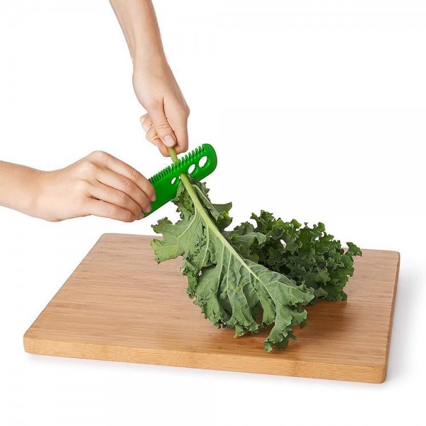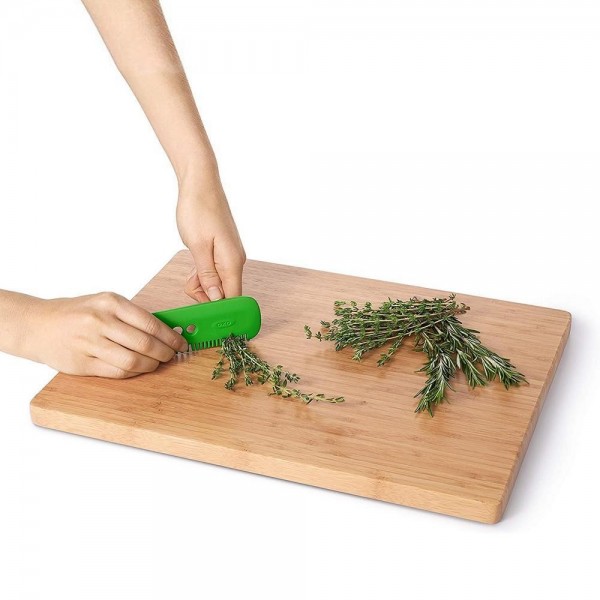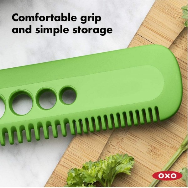Бързо и ефикасно отстранете листата от магданоз, кориандър, мащерка, розмарин, риган и естрагон от стъблата им с OXO Good Grips Herb & Kale Stripping Comb. Използвайте плоската страна, за да натискате и събирате билките преди кълцане, както и някой от четирите специално проектирани отвора по тялото, за да премахнете къдравото зеле, манголд, яки или други листни зеленчуци с просто издърпване. Уникалната форма на гребена е удобна за хващане и издърпване под всякакъв ъгъл.