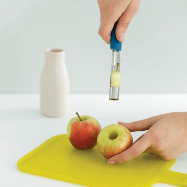 Този уред за почистване на ябълки е много лесен за употреба - има цилиндрична форма, която спомага за точното му центриране. Също така е с назъбено острие, благодарение на което лесно отстранявате сърцевината на плода с едно движение. Красива и здрава цветна дръжка. Почиства се лесно и може да се мие в съдомиялна. Уредът е част от серията "Tasty colors".