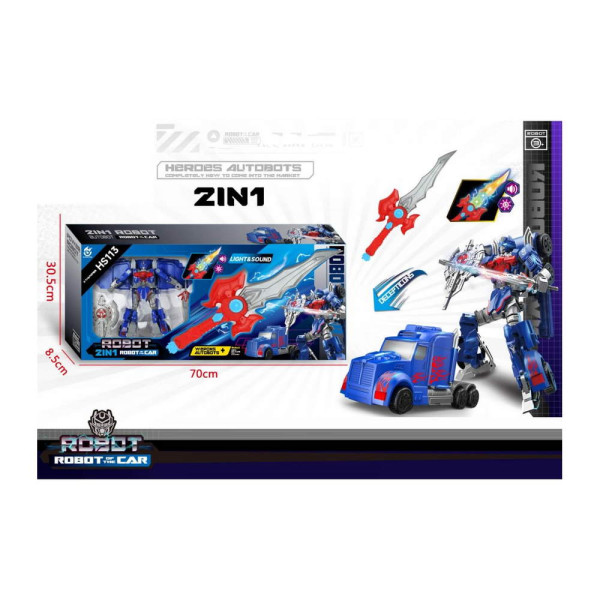 Играчка робот-трансформърс камион. С включен меч със звук и светлина. Подходящо за момчета над 3 години и чудесен подарък за всякакъв повод.