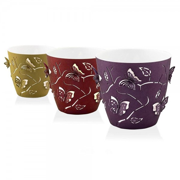 Описание на 1,4 л пластмасова саксия с декор 3D пеперуди в различни цветове: