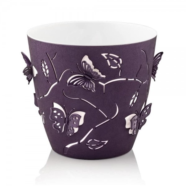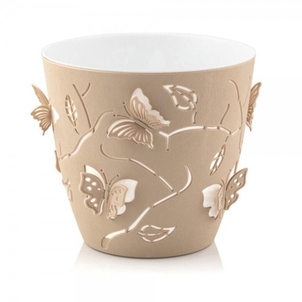 Описание на 2,5 л пластмасова саксия с декор 3D пеперуди в различни цветове: