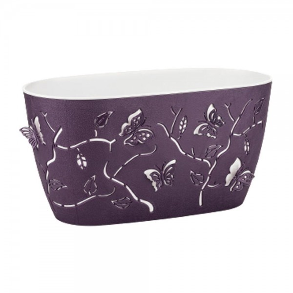 Описание на 4,1 л пластмасова продълговата саксия с декор 3D пеперуди в различни цветове: