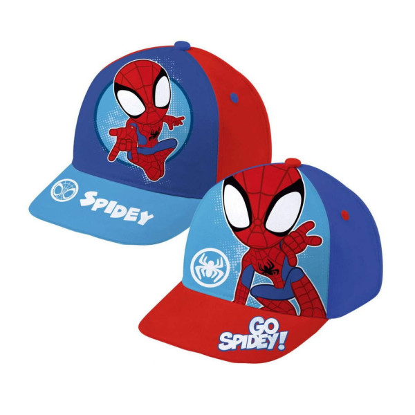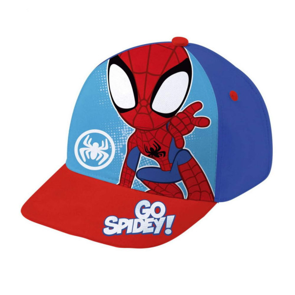 Лятна шапка за бебета и деца Спайдърмен, изработена по европейски дизайн, на испанския производител Arditex. С принтирана предна част, козирка и велкро лепенка за регулиране на ширината. Размер 44/46. Подходящо за момчета над 6 месеца.