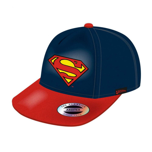 Лятна шапка за деца и юноши Супермен, изработена по европейски дизайн, на испанския производител Arditex. С бродерия, козирка и велкро лепенка за регулиране на ширината. Размер 56/58. Подходящо за момчета над 8 години.