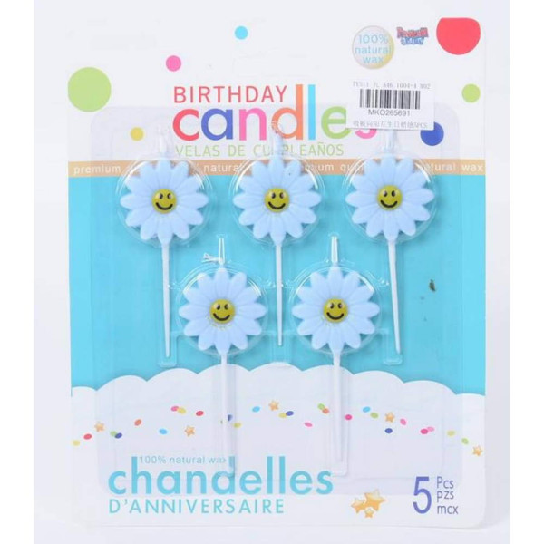 Свещи за торта маргаритки, комплект от 5 бр. Подходящи за рождени дни и тематични партита.