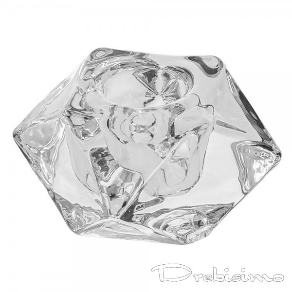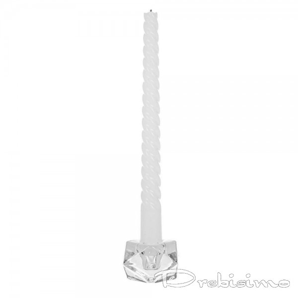Малък, но тежък (180 гр.) стъклен свещник с красиво преливащи се страни. Идеален за свещи с височина 25 см.