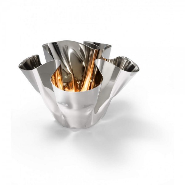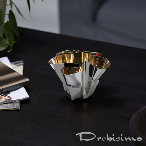 Най-накрая, по-малката сестра на вазата MARGEAUX излезе на бял свят и блести безспирно от първия си миг на създаване. Тези ръчно изработени уникални произведения на изкуството веднага придават романтична атмосфера на обкръжаващата ги среда чрез трептящата светлина от свещите, която всява уютна тишина и спокойствие. Изискват се много години майсторски стаж, за да се постигне този ефект на извиване на стоманата в меки органични форми и се полира. Това отново затвърждава тезата, че истинското изкуство произлиза от уменията на човекa.